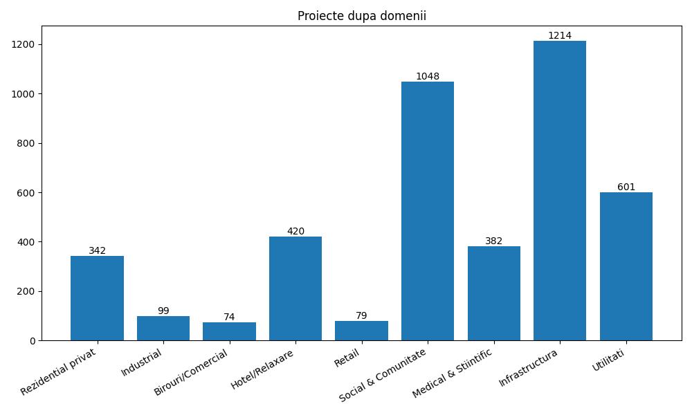 Structura pe domenii scoate în evidență o orientare puternică spre infrastructură și utilități, care însumează împreună peste 1.800 de proiecte. Acest lucru reflectă nevoia de modernizare a rețelelor și serviciilor publice, dar și direcția strategică a investițiilor, în special în contextul alinierii la standarde europene.