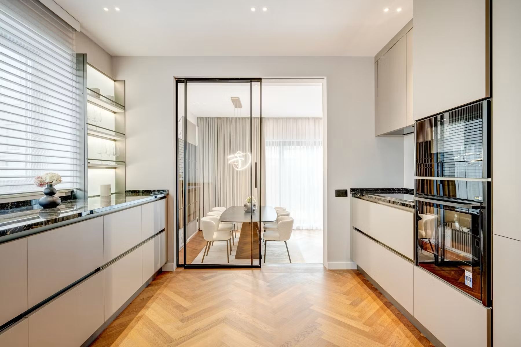 Această direcție este vizibilă în special în designul de bucătării, unde materialele, finisajele și detaliile tehnice devin elemente cheie de identitate. Vorbim despre un stil care îmbină minimalismul cu un nivel ridicat de calitate senzorială, forme curate, dar finisaje bogate.