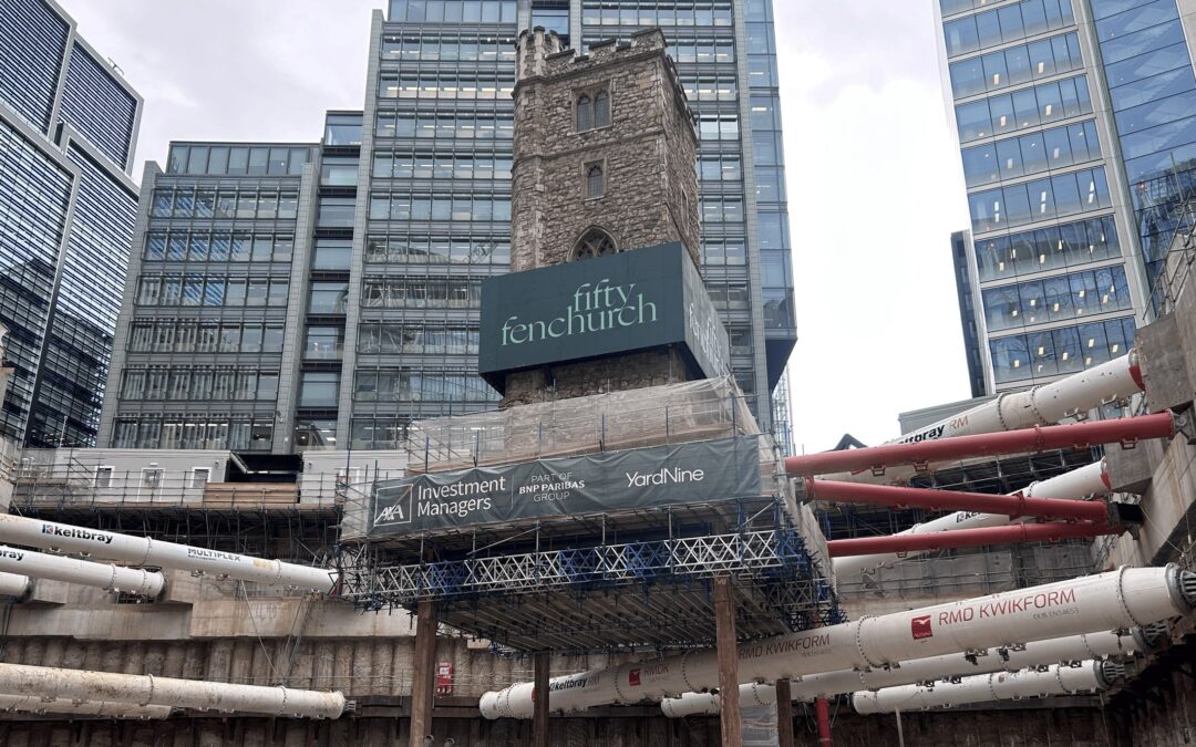 Într-un șantier spectaculos din inima Londrei, o biserică medievală de peste 700 de ani a fost suspendată deasupra lucrărilor de excavare pentru viitorul zgârie-nori 50 Fenchurch Street, proiectat de Eric Parry Architects.