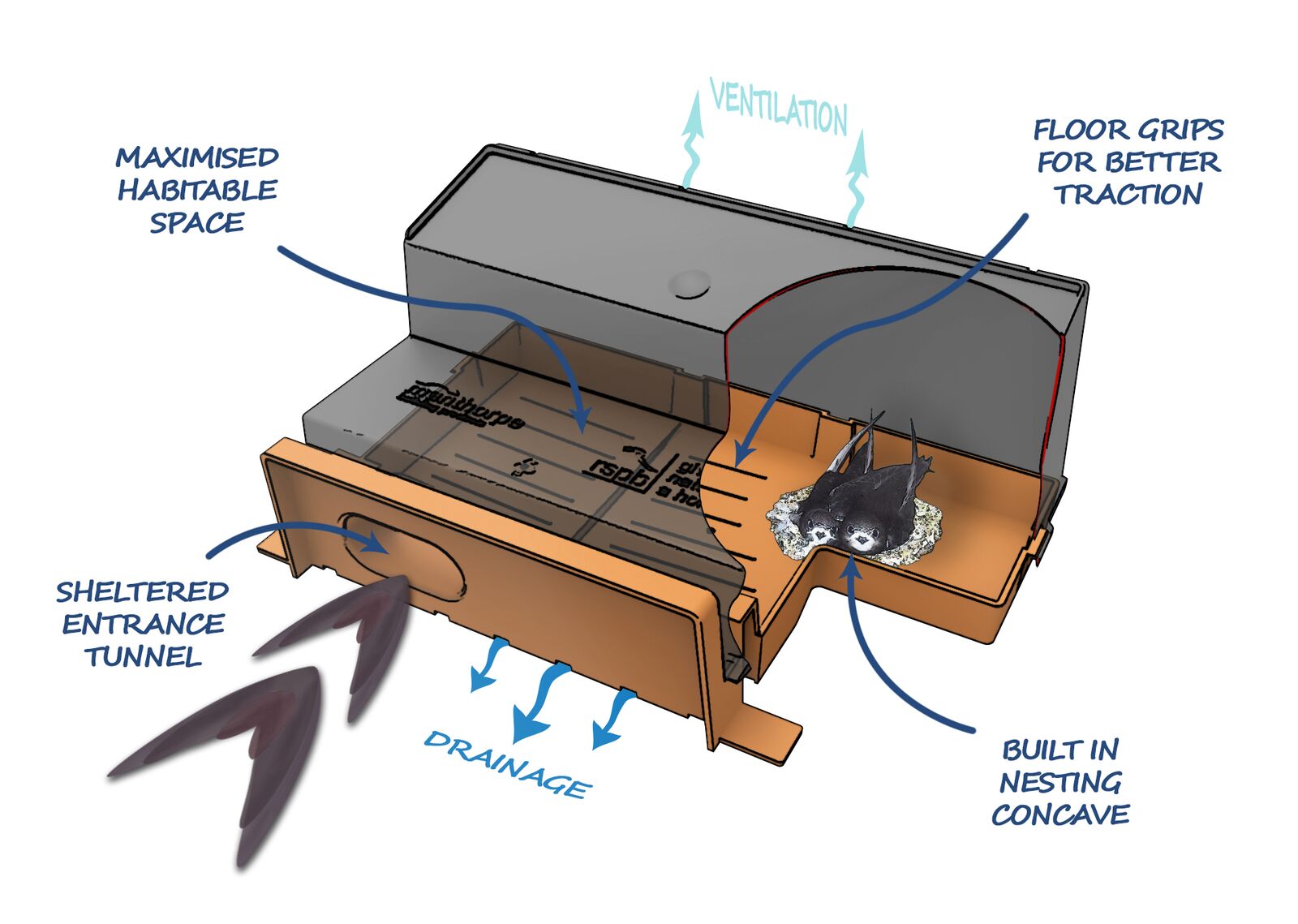 Swift brick-urile sunt cărămizi goale în interior, concepute să fie locuibile de păsări care se cuibăresc în cavități, precum rândunica de casă (swift, de aici și numele). Această specie, odată comună în Marea Britanie, se află acum pe lista roșie a speciilor de conservare, din cauza declinului populației. Lipsa locurilor de cuibărit în structurile urbane este considerată principala cauză a scăderii numărului acestor păsări.