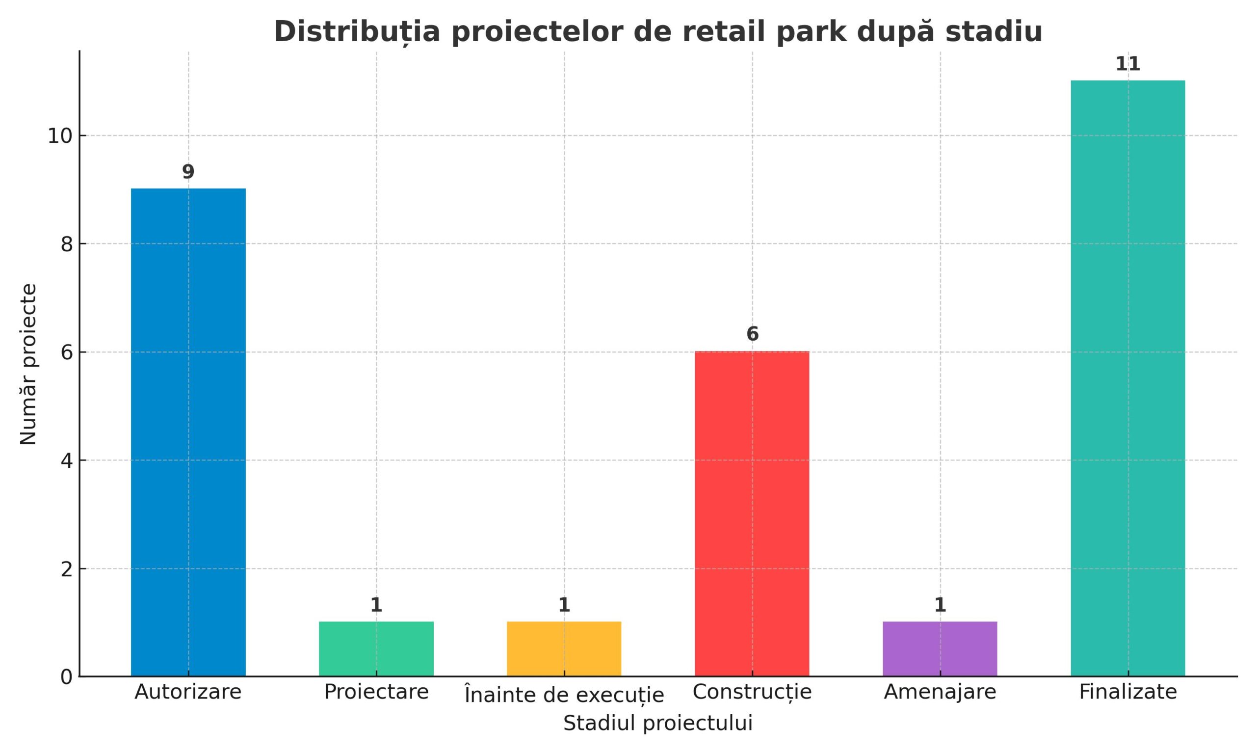 Datele platformei Victa, asistentă virtuală de vânzări pe șantier, arată că în ultimele 12 luni au fost monitorizate 29 de proiecte de parcuri de retail în România. Valoarea cumulată a investițiilor este de aproximativ 993,91 milioane RON, iar suprafața totală construită sau planificată se apropie de 242.840 mp.