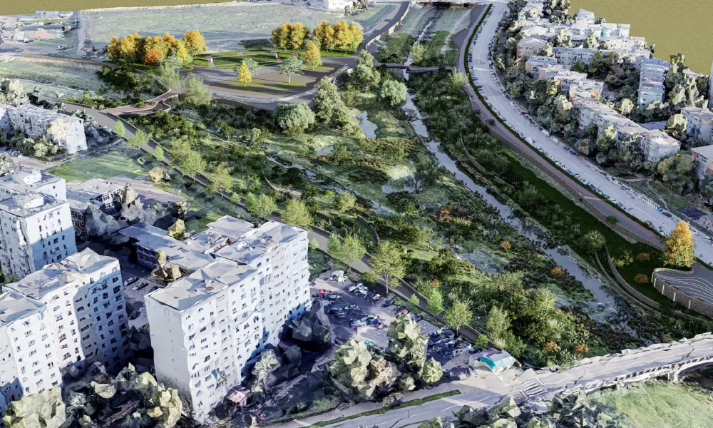 Primele randări ale proiectului „Delta urbană”, propus la confluența râurilor Bahlui și Nicolina, indică o intervenție majoră de regenerare urbană, cu impact semnificativ asupra peisajului și funcționalității zonei.