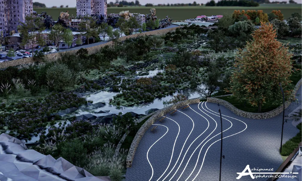 Intervenția urmărește atât valorificarea cadrului natural existent, cât și integrarea acestuia în structura urbană.
