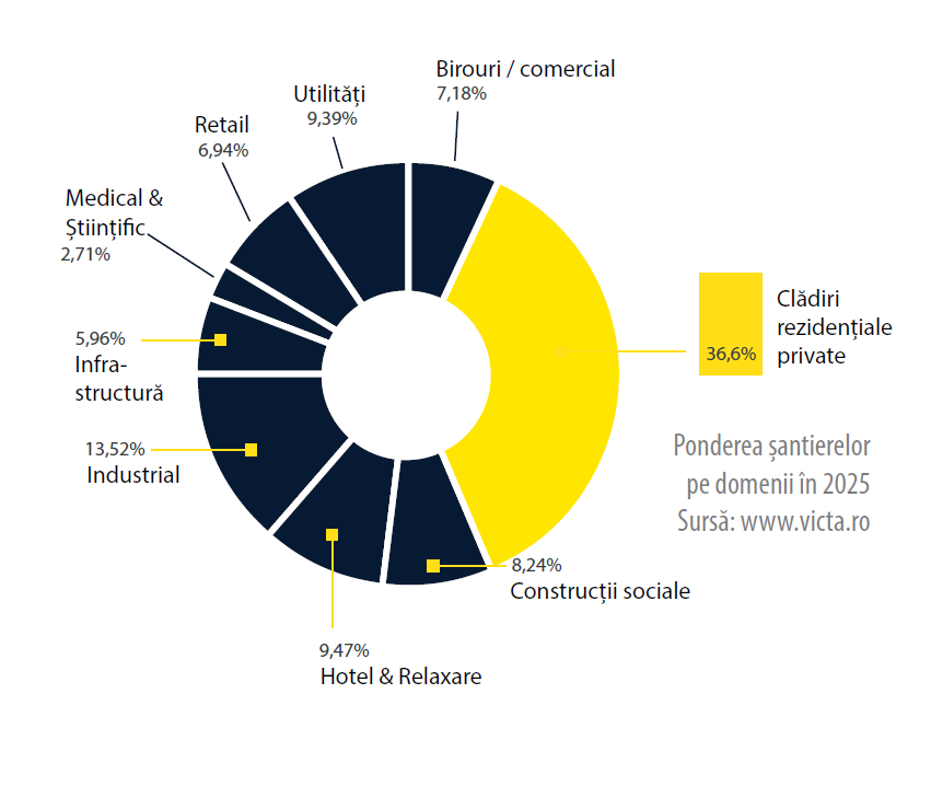 Cu alte cuvinte, anul 2025 se conturează ca o perioadă a extinderii și dezvoltării, în care piața construcțiilor și-a recâștigat treptat ritmul de creștere. Relansarea activității a fost susținută de revenirea încrederii investitorilor, care și-au reactivat planurile de dezvoltare și au demarat proiecte noi, contribuind astfel la consolidarea unei dinamici pozitive la nivelul întregului sector.