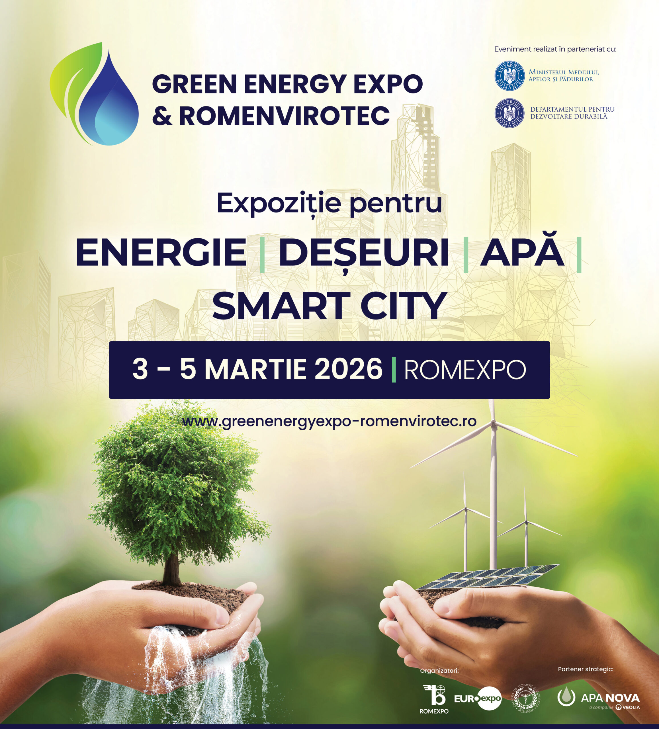 • GREEN ENERGY EXPO & ROMENVIROTEC 2026, platforma numărul 1 din România pentru tehnologii dedicate comunităților sustenabile, sprijină Republica Moldova în consolidarea expertizei strategice în domeniul mediului și energiei verzi, prin companiile expozante, tehnologiile prezentate și accesul la autorități locale și internaționale