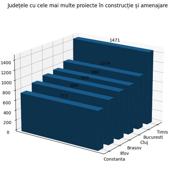 Distribuția lor aduce în prim-plan un echilibru interesant. Timișul și Bihorul se află la egalitate, fiecare cu câte 247 de proiecte publice, o situație care reflectă investiții consistente în vestul țării. Bucureștiul, cu 223 de proiecte, și Clujul, cu 217, confirmă statutul de centre urbane prioritare, în timp ce Constanța, cu 216 proiecte, își menține relevanța în acest tablou.