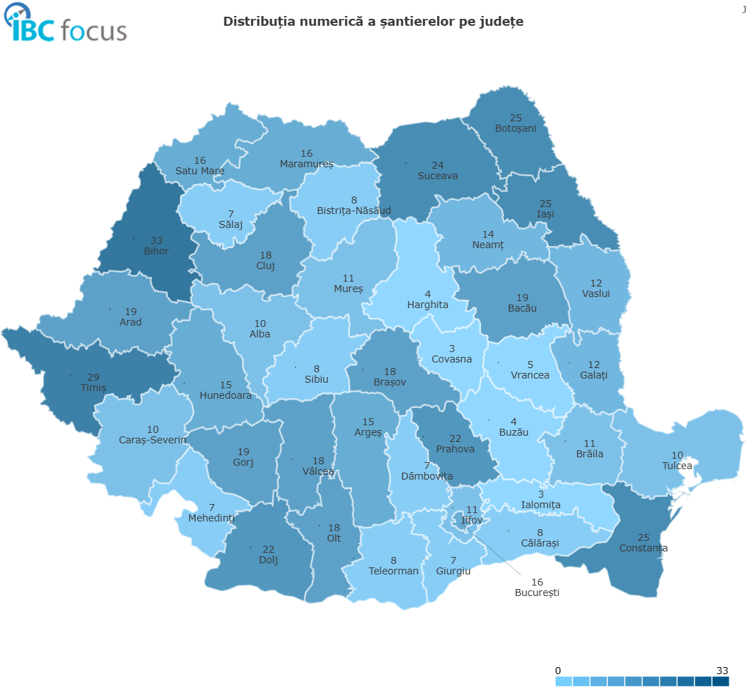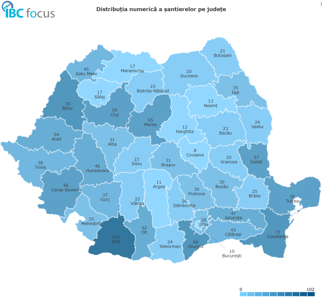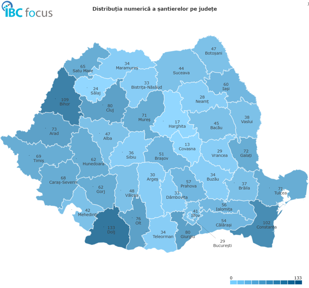 Sectorul public contribuie cu 592 de proiecte (25,60 miliarde RON), în principal în Bihor (33), Timiș (29), Constanța, Botoșani și Iași (câte 25 fiecare).