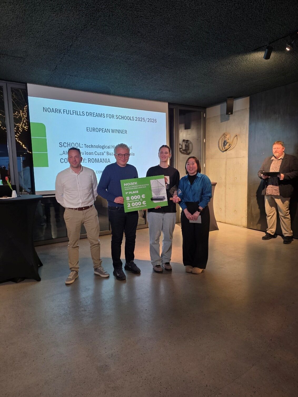 În calitate de campioni europeni, elevii au obținut pentru liceul lor marele premiu: 8.000 de euro (echivalent în lei) pentru finanțarea școlii, precum și echipamente NOARK Electric în valoare de 2.000 de euro.