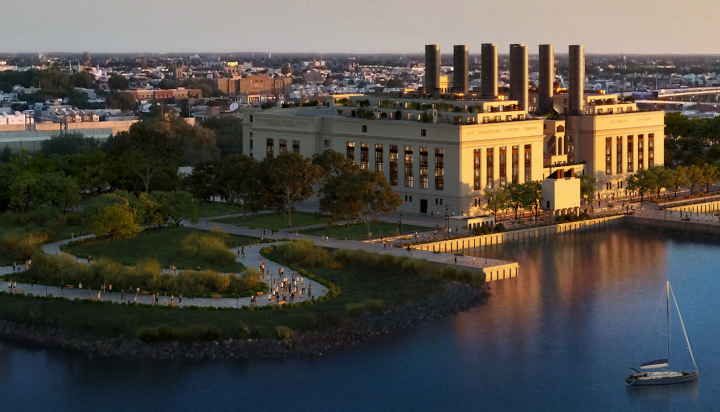 Clubul sportiv ocupă fosta sală a turbinelor, un volum orizontal între intrarea originală și partea din spate care se deschide către apă, acum ocupată de apartamente și o piscină pe acoperiș între coșurile de fum dezafectate.