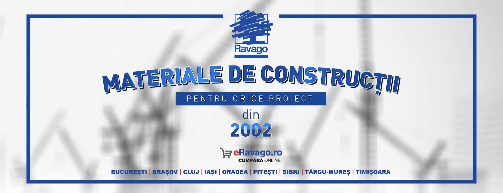 Operăm 10 depozite de materiale de construcții, în diferite orașe din țară, ceea ce ne permite să fim aproape de clienți și de șantiere, iar prin magazinul online www.eRavago.ro completăm această prezență cu un canal digital tot mai utilizat. Ne-am construit poziția în timp prin seriozitate, continuitatea calității produselor, susținută de o selecție atentă a producătorilor cu care lucrăm, și prin faptul că punem accent pe soluții complete, oferte personalizate și servicii logistice.