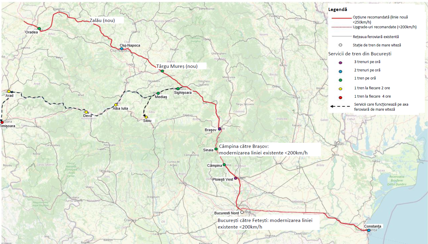 Proiectul ar costa 15 miliarde euro (75 miliarde RON) și presupune atât modernizarea unor linii existente, cât și construirea unor linii noi, duble. Planul a fost comandat unei companii canadiene, Atkins Reali, iar studiul de oportunitate urmărește condițiile necesare pentru un sistem de mare viteză integrat în rețeaua europeană TEN-T, cu evaluare economică, financiară și operațională.