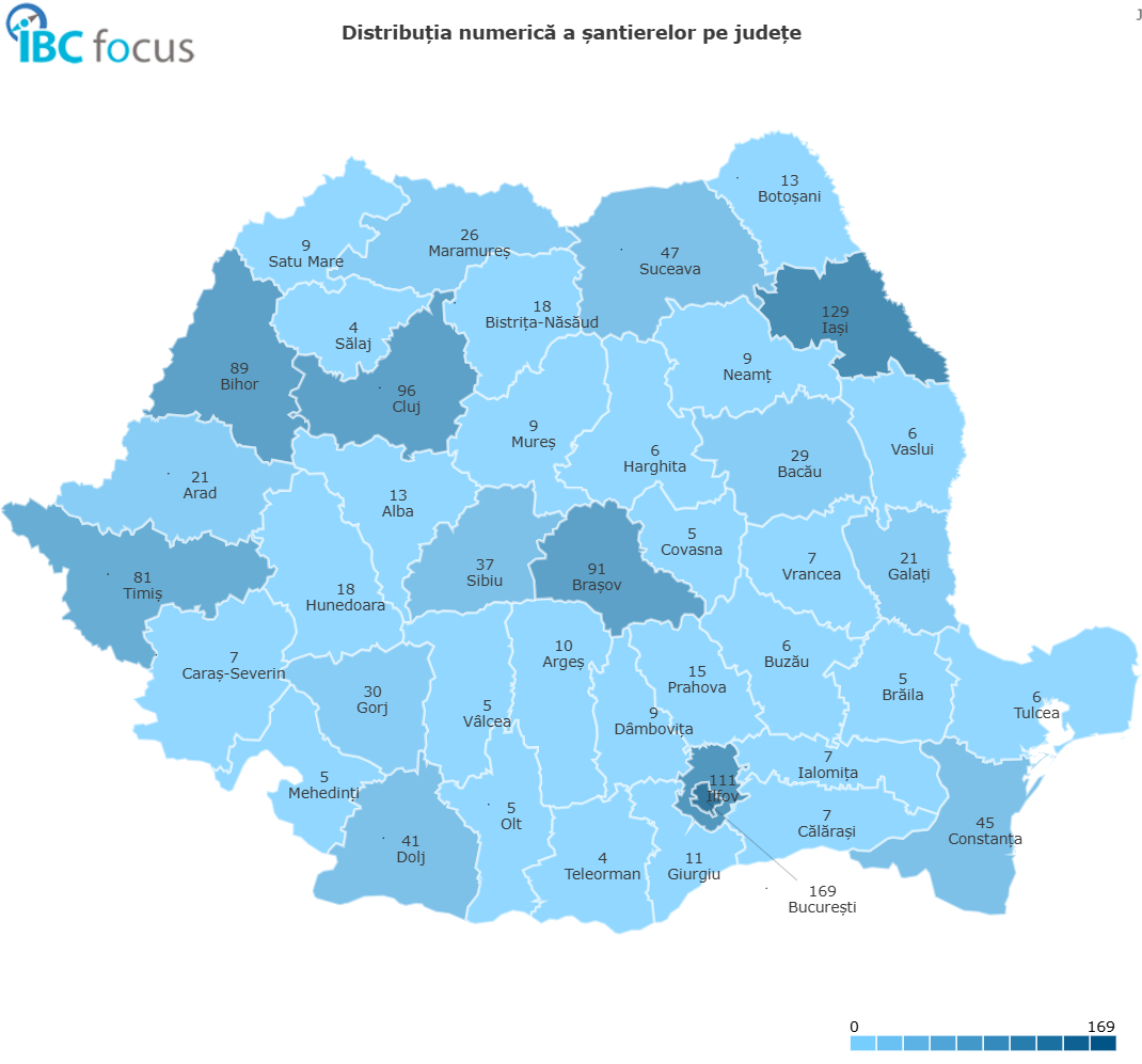 Cele mai multe investiții sunt concentrate în București, Ilfov, Cluj, Iași și Bihor, semn că atât zona capitalei, cât și marile centre universitare și de business din țară continuă să atragă dezvoltatori.