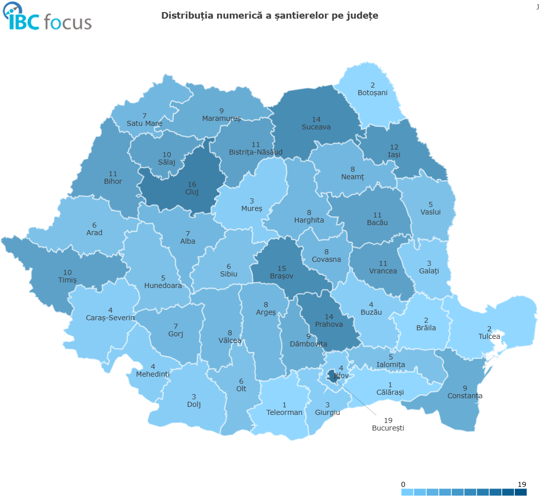 Distribuția geografică relevă că Bucureștiul conduce cu 19 proiecte, urmat de județele Cluj (16), Brașov (15), Prahova (14) și Suceava (14). În general, proiectele de tipul acesta sunt concentrate în zonele urbane şi de centură aglomerate, precum și de-a lungul unor coridoare de transport majore.
