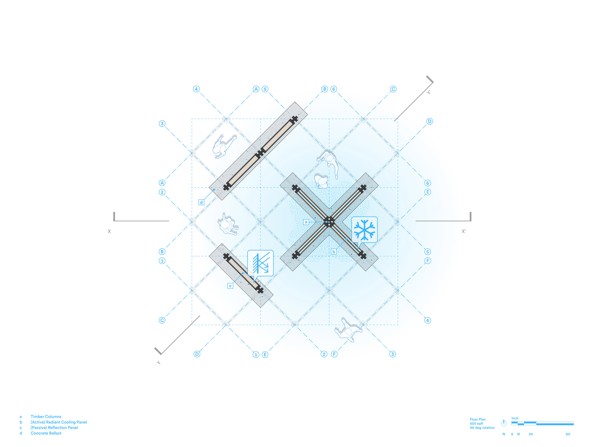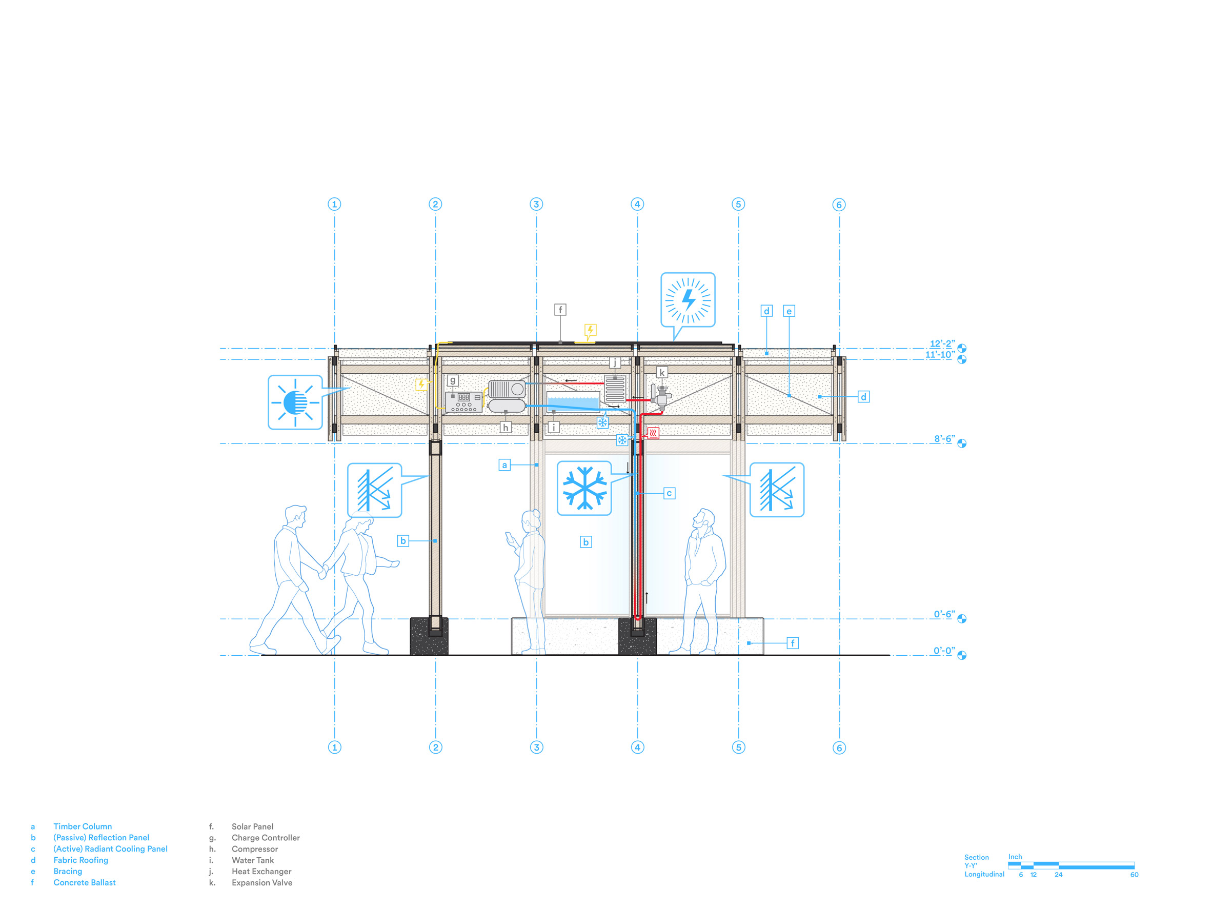 Structura funcționează pe baza unui sistem de răcire radiantă alimentat de panouri solare montate pe acoperiș. Potrivit echipei de proiect, sistemul consumă cu 70% mai puțină energie decât un aparat de aer condiționat convențional.