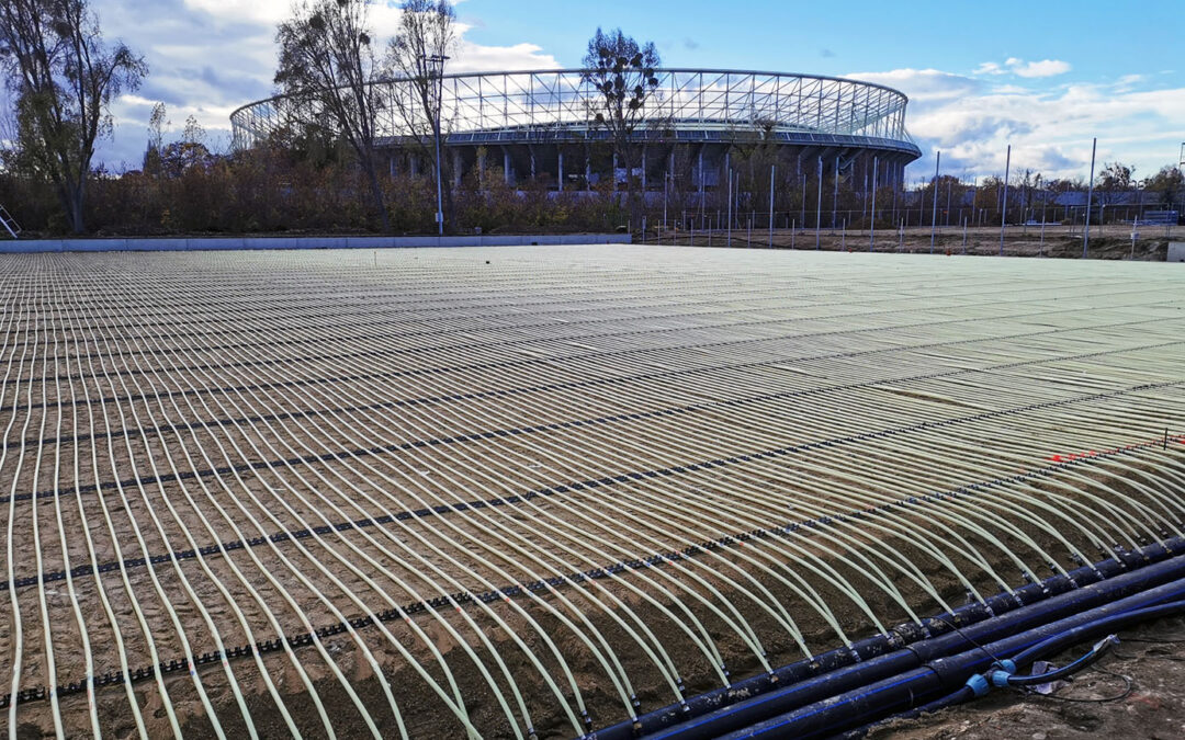 Soluția vizează menținerea gazonului în parametri optimi de utilizare pe tot parcursul anului, indiferent de variațiile de temperatură. Din punct de vedere tehnic, sistemul funcționează printr-un mecanism de încălzire și răcire amplasat în proximitatea stratului radicular, alimentat cu apă subterană, ceea ce permite o reacție rapidă la schimbările climatice și un consum energetic optimizat.